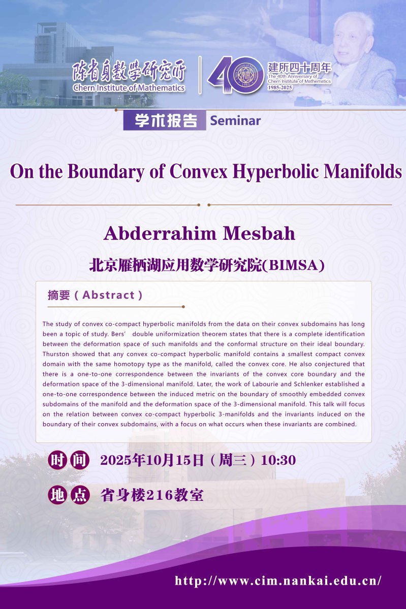 Chern Institute of Mathematics, Nankai University, Tianjin,China. 300071 Tel: 86-22-2350-8228、86-22-2350-1029, Fax: 86-22-2350-8114, Email:cim@nankai.edu.cn