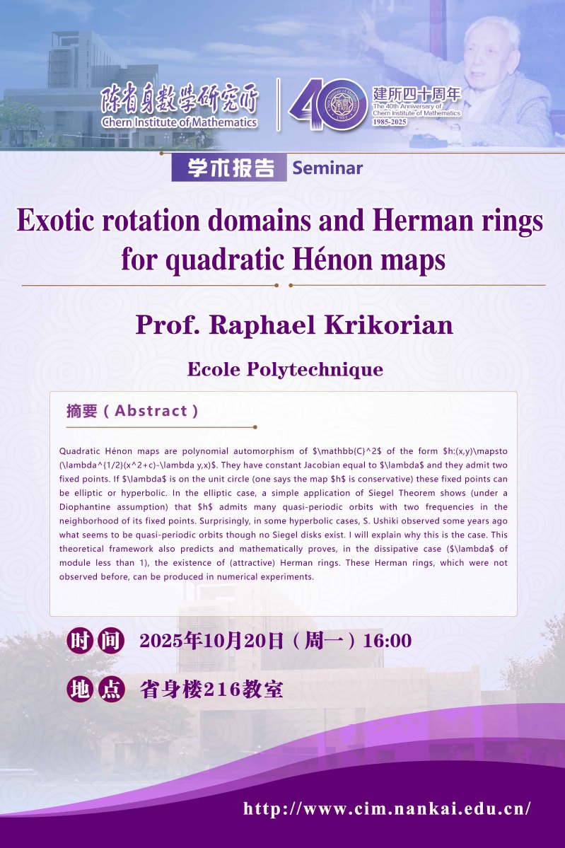 Chern Institute of Mathematics, Nankai University, Tianjin,China. 300071 Tel: 86-22-2350-8228、86-22-2350-1029, Fax: 86-22-2350-8114, Email:cim@nankai.edu.cn