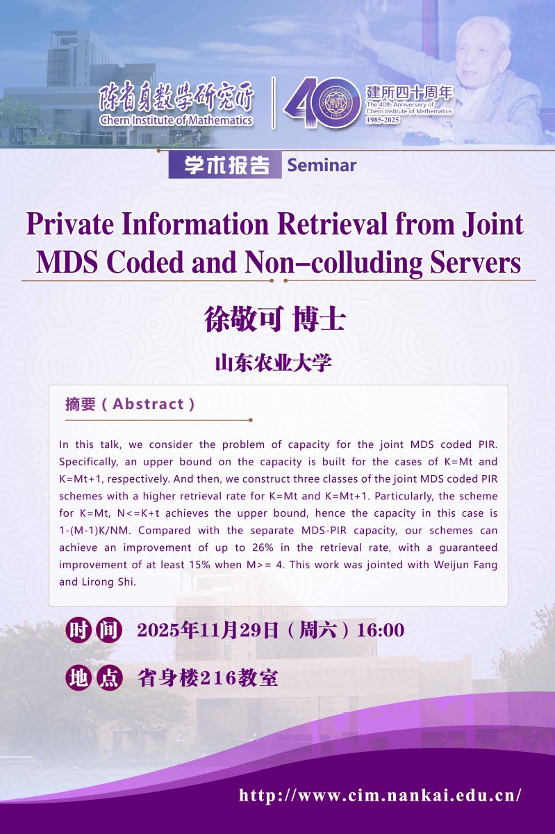 Chern Institute of Mathematics, Nankai University, Tianjin,China. 300071 Tel: 86-22-2350-8228、86-22-2350-1029, Fax: 86-22-2350-8114, Email:cim@nankai.edu.cn