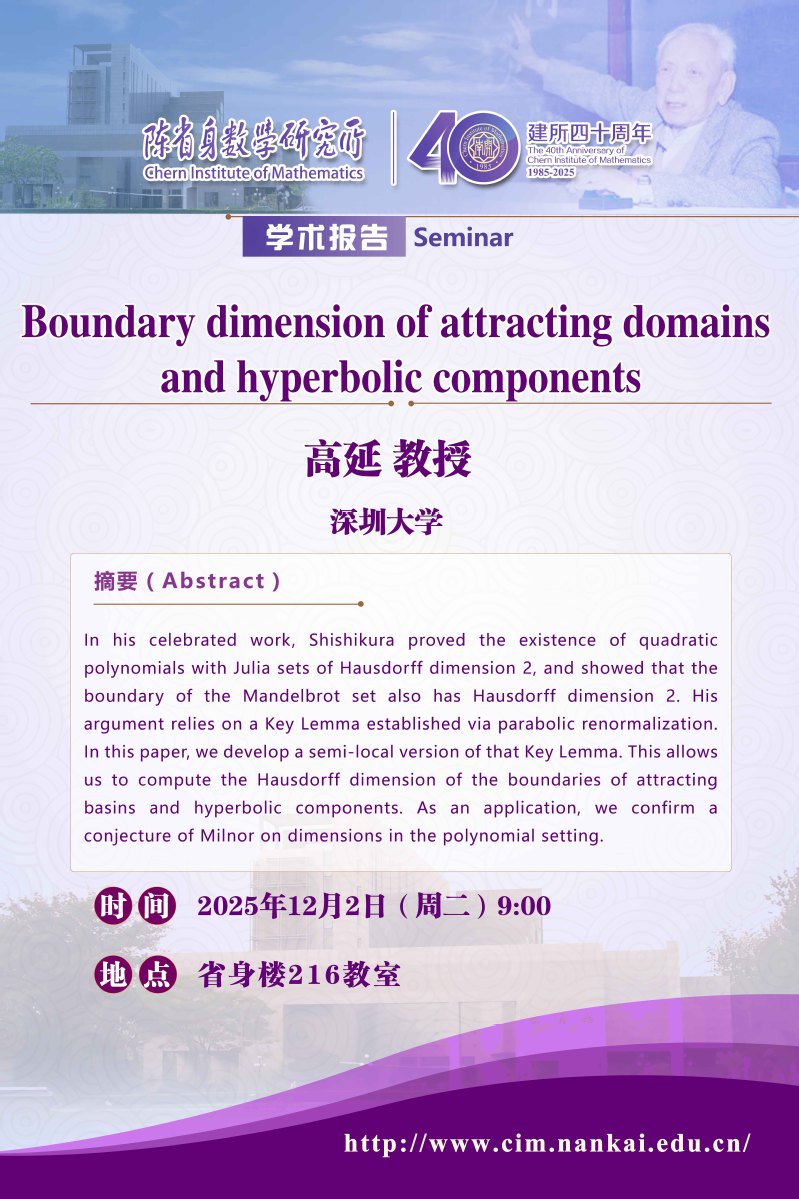 高延 教授:Boundary dimension of attracting domains and hyperbolic components
