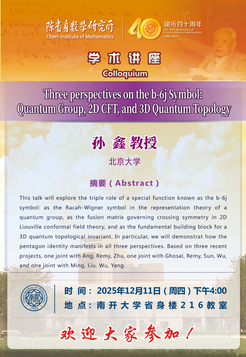 Chern Institute of Mathematics, Nankai University, Tianjin,China. 300071 Tel: 86-22-2350-8228、86-22-2350-1029, Fax: 86-22-2350-8114, Email:cim@nankai.edu.cn