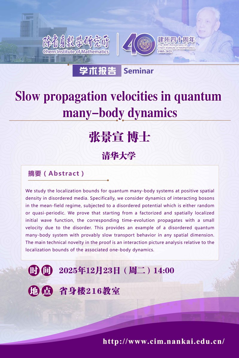 Chern Institute of Mathematics, Nankai University, Tianjin,China. 300071 Tel: 86-22-2350-8228、86-22-2350-1029, Fax: 86-22-2350-8114, Email:cim@nankai.edu.cn