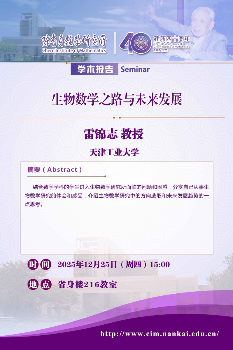Chern Institute of Mathematics, Nankai University, Tianjin,China. 300071 Tel: 86-22-2350-8228、86-22-2350-1029, Fax: 86-22-2350-8114, Email:cim@nankai.edu.cn