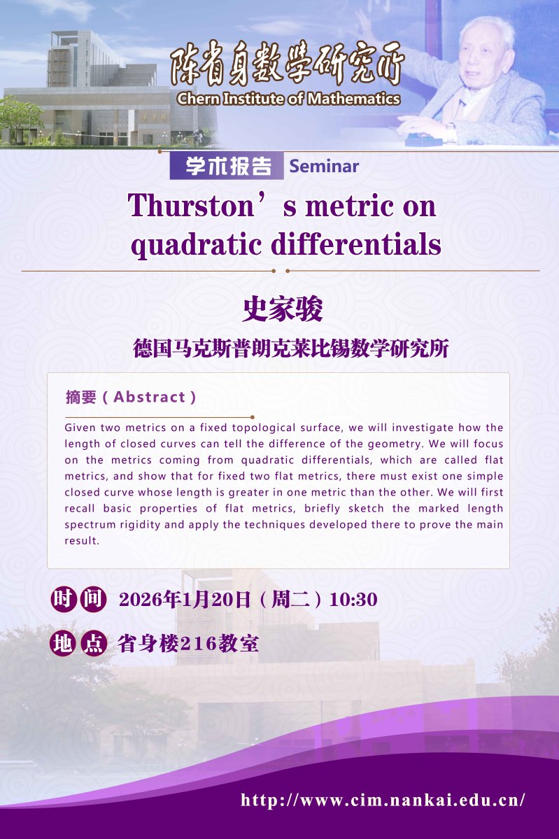 史家骏:Thurston's metric on quadratic differentials