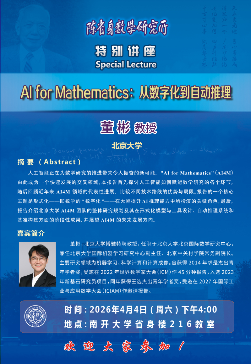 Chern Institute of Mathematics, Nankai University, Tianjin,China. 300071 Tel: 86-22-2350-8228、86-22-2350-1029, Fax: 86-22-2350-8114, Email:cim@nankai.edu.cn