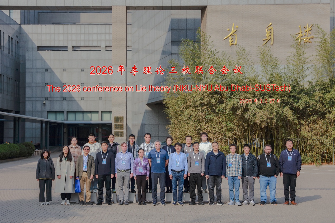 2026年3月25-29日,2026年李理论三校联合会议在南开大学省身楼举办。此次组织委员会由南开大学白承铭教授,南方科技大学Vyacheslav Futorny院士组成,会议学术委员会由纽约大学阿布扎比分校Sofiane Bouarroudj教授、厦门大学谭绍滨教授和南方科技大学Efim Zelmanov院士组成。来自加拿大、印度、巴西、香港、吉林、天津、深圳、厦门等地30多位代表参会。